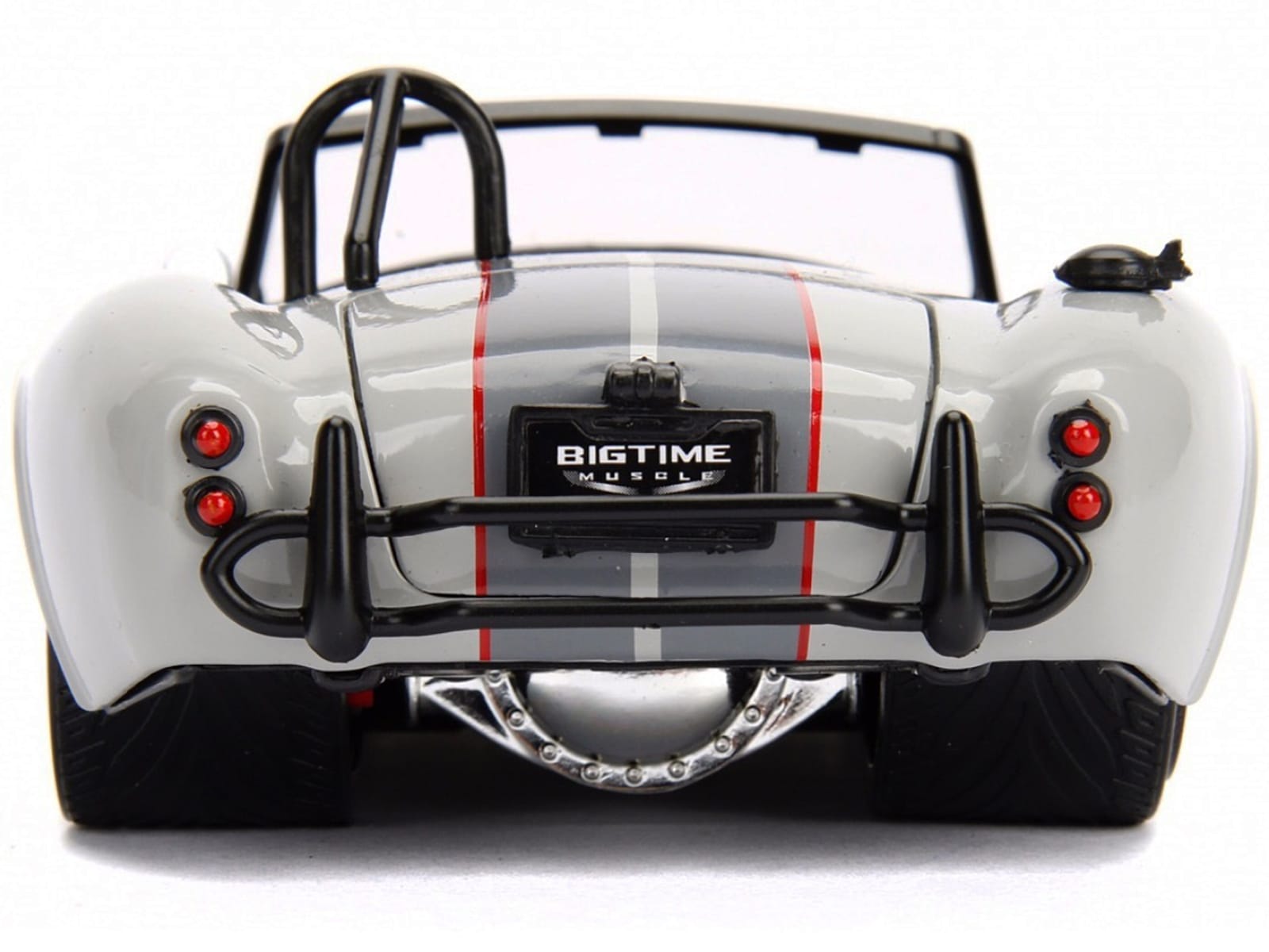 - Brand new 1/24 scale diecast car model of 1965 Shelby Cobra 427 S/C Gray with Stripes “Bigtime Muscle” Series die cast model car by Jada.