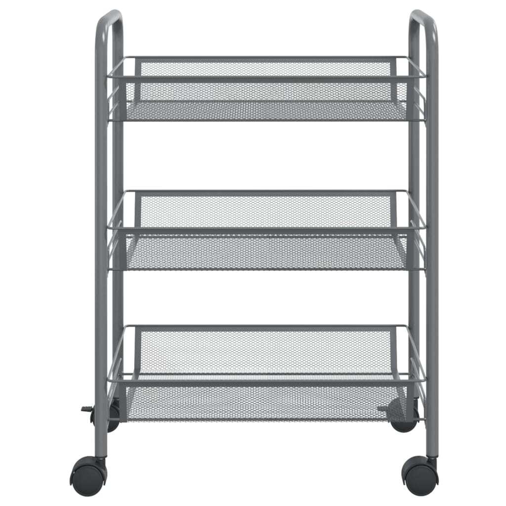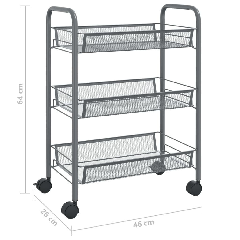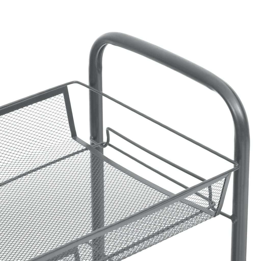 This household trolley features an iron construction, making it sturdy and durable. The space-saving cart has 4 wheels, and 2 wheels have brakes for easy moving and stalling. The mesh baskets are strong and removable, which provide additional storage space and make full use of the room. The trolley is ideal for storing toys, keys, food, etc.