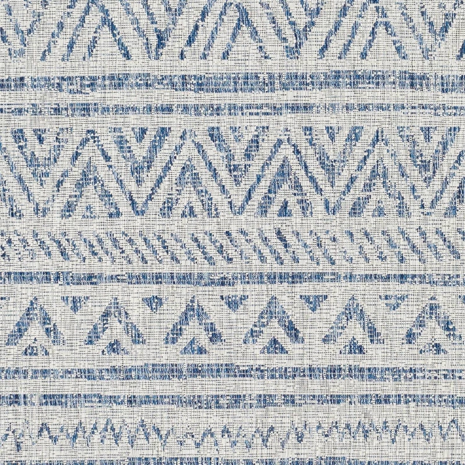 - 4 ft. x 6 ft. Blue Grey Chevron Coastal Boho Style Indoor Outdoor Area Rug