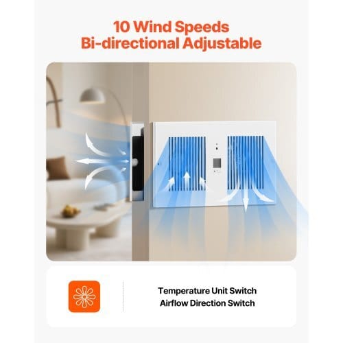 Maximum Airflow (CFM): 300 CFM,Item Dimensions (L x W x H): 16.54 x4.53 x 7.76 inch / 420 x 115 x 197 mm,Control Method: RemoteControl + Buttons,Color: White,Noise (dB): ≤46dB (Measured at 1Meter),Speed (r/min): 3250 r/min,Fan Diameter: 4 Inch / 110Mm,Temperature Control: 32℉ to 140℉ / 0℃ to 60℃,Voltage Frequency:AC120V 60Hz,Item Model Number: BT-RTR42-ECG,Wall ThicknessCompatibility: 3.74-7.48 inch / 95-190 mm,Speed Levels: 10-SpeedSettings,Net Weight: 8.27 lbs / 3.75 kg,Power: 12W,Main Material:SPCC