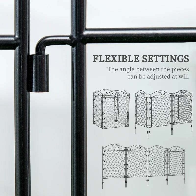 This 4 Pack Steel Foldable Fence Floral Trellis Panel Animal Barrier comes with 4 panels per purchase, measuring 34.75″ x 43.25″ high. Each set of panels can reach a maximum of 11.5′ long. Our metal garden fence customizes into all sorts of angles to suit your needs. Bend the four steel fence panels into shapes like an “I”, “L”, square, or wave. It’s excellent as garden edging for flowers and as a border to another yard. This garden fencing is easy to install with no tools required. The steel panels connect with a simple interlocking design and push straight into the ground with included stakes, making them a portable fencing option.