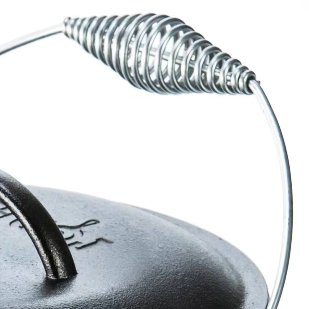 - The 5-Quart Seasoned Cast Iron Dutch Oven with Lid and Spiral Wire Handle has been popular for over a century and is perfect for camp and hearth cooking.
