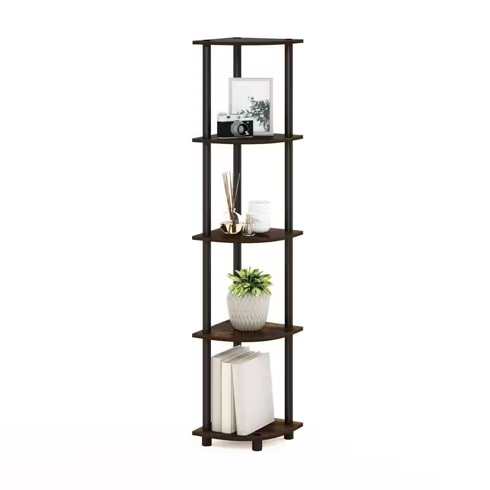 - 5-Shelf Modern Corner Bookcase in Black Brown Wood Finish