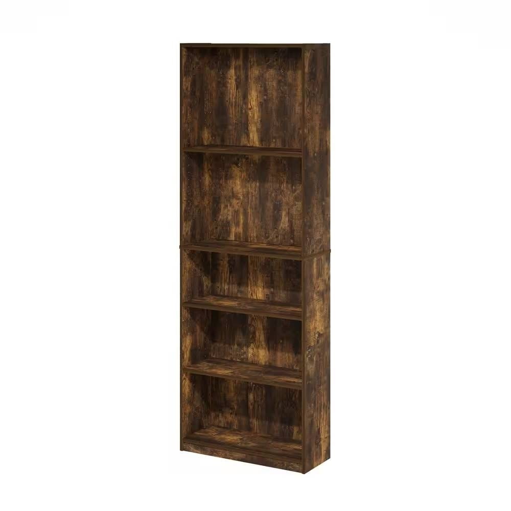 - 71-inch Tall 5-Shelf Bookcase in Medium Brown Wood Finish