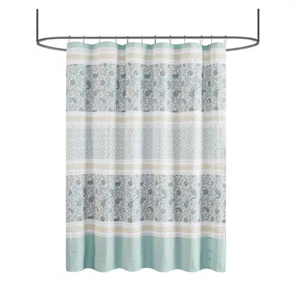 - 72 x 72-in Cotton Shower Curtain with Teal Blue Grey Cream White Paisley Pattern
