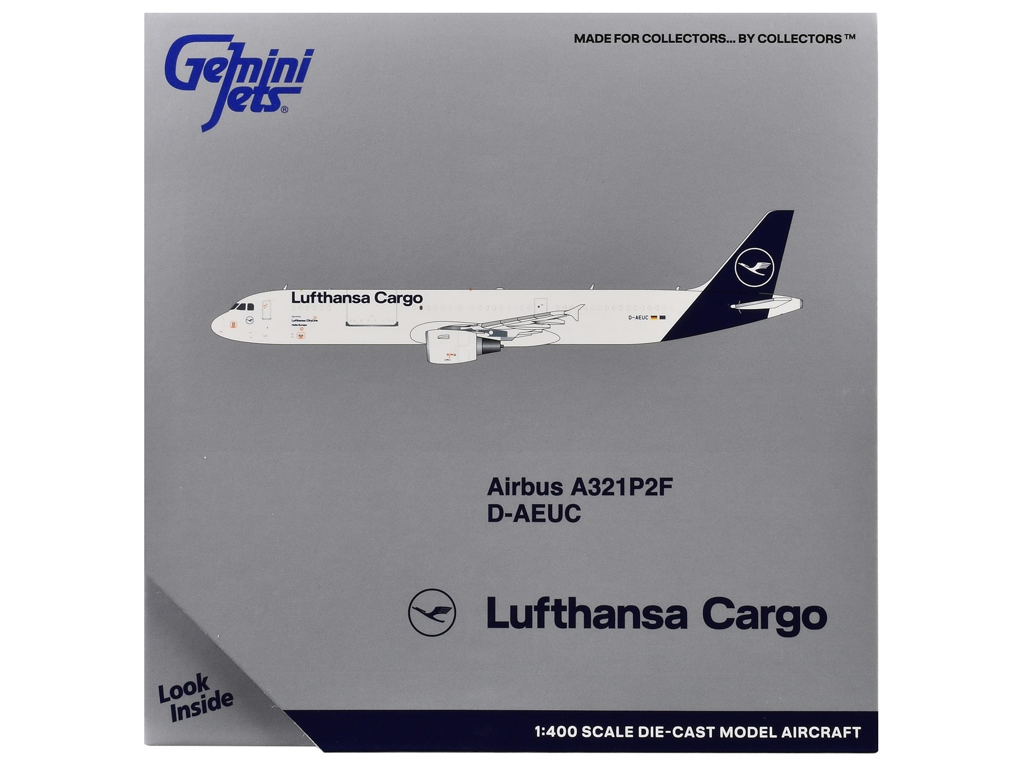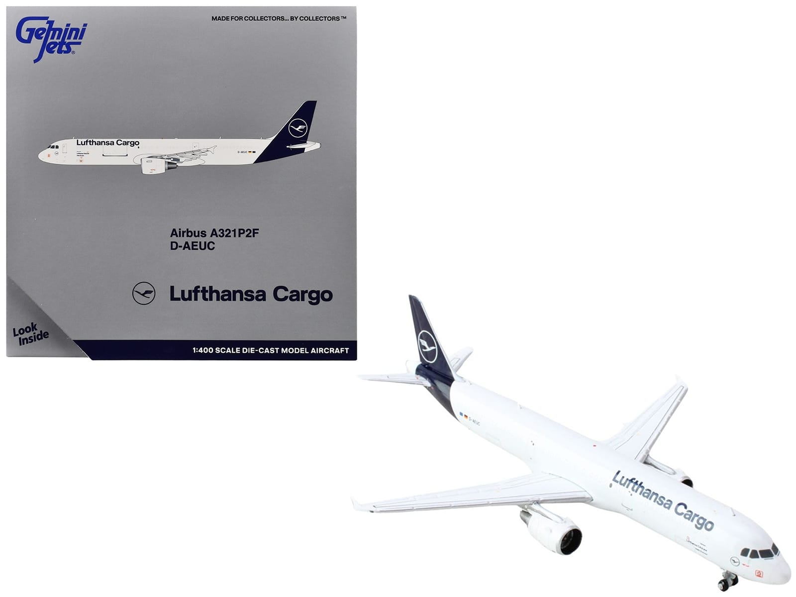 - Brand new 1/400 scale diecast airplane model of Airbus A321P2F Commercial Aircraft “Lufthansa Cargo” (D-AEUC) White with Blue Tail die cast model by GeminiJets.