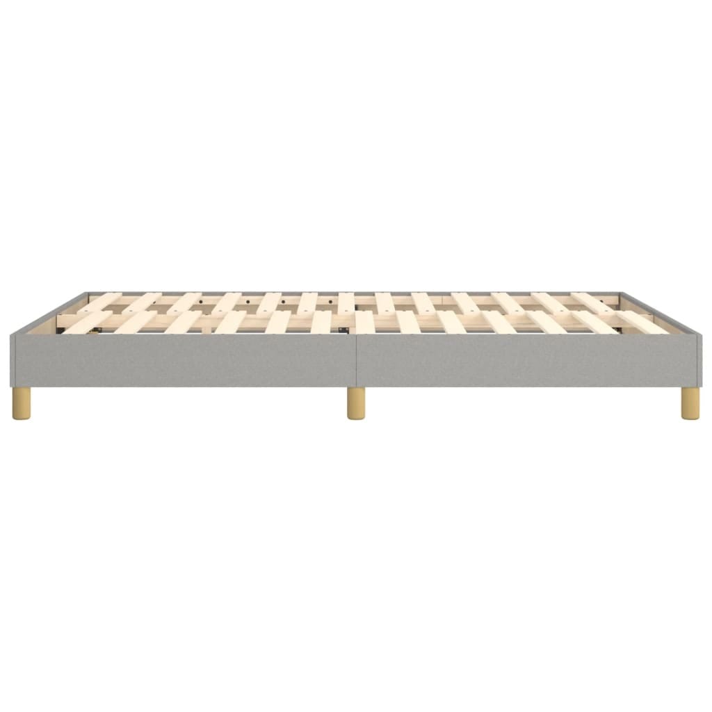 - The contemporary design of this bed frame features visually appealing light grey upholstery that enhances your bedroom decor, creating a relaxed and inviting vibe.