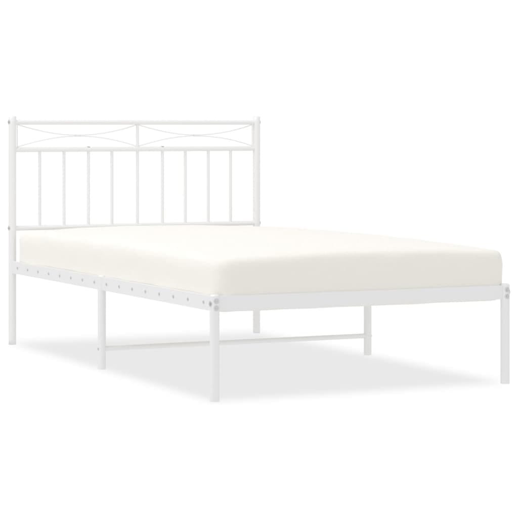 Bed Frame White Powder-Coated Steel Twin Bed Frame Rectangular