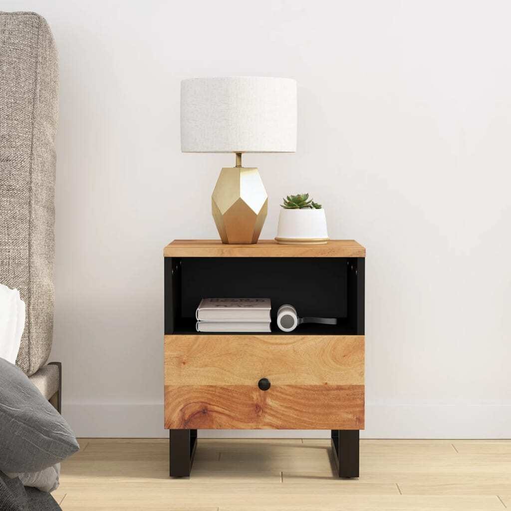 This Bedside Cabinet, made from solid acacia wood and engineered wood, is a great mix of practicality and good looks, making it a fab addition to any modern bedroom. Its industrial style has sleek black legs that work well with loads of decor styles, all while being super practical for everyday use.