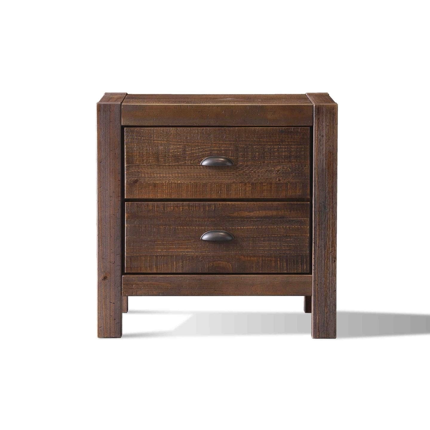 Give your bedroom a rustic look with the warmth of this solid wood nightstand. Made of 100% solid pine wood, this nightstand features a sturdy construction that can last for years. The finish is designed to accentuate the unique grain, knots, and natural textures in the wood panels; and each piece is sanded and distressed by hand leading to variations in the color and texture that make every unit unique. This distressed finish is very durable and easy to touch-up.