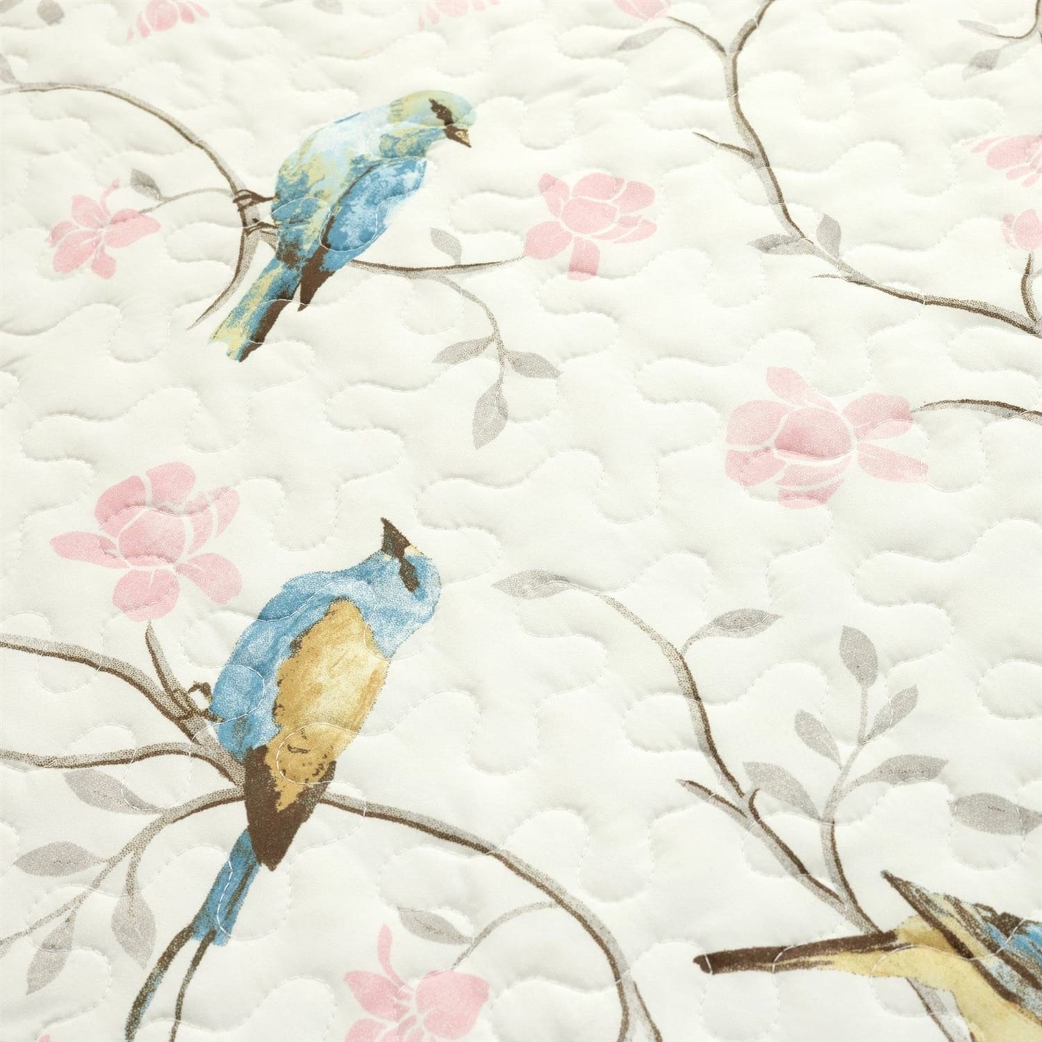 Full/Queen Reversible Lightweight Polyester Floral Birds 3 Piece Quilt Set