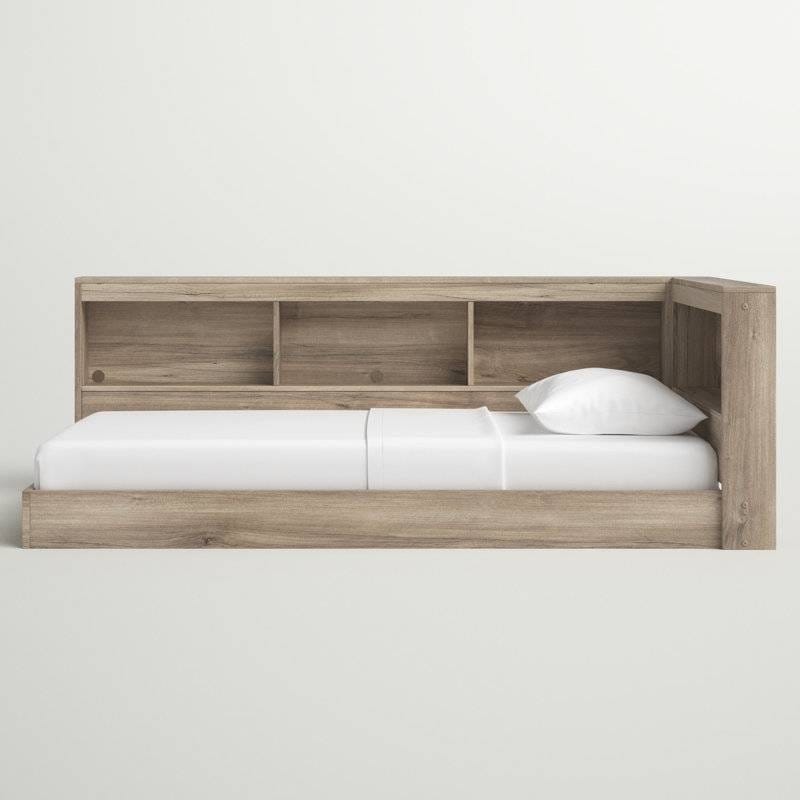 Ideal for avid young readers, this Corner Bookcase Headboard Storage Platform Floor Bed makes it easy to grab your favorite book from the comfort of your mattress. Crafted from solid and engineered wood, this corner bed is a smart, space-saving choice that brings a big style to small living areas. The integrated storage headboard and bookcase side rails work wonders for calming clutter, while the innovative design lets you flip the configuration to suit your space. This headboard even includes 2 slim-profile USB charging ports. Plus, you can add your preferred mattress (sold separately) without the need for a box spring.