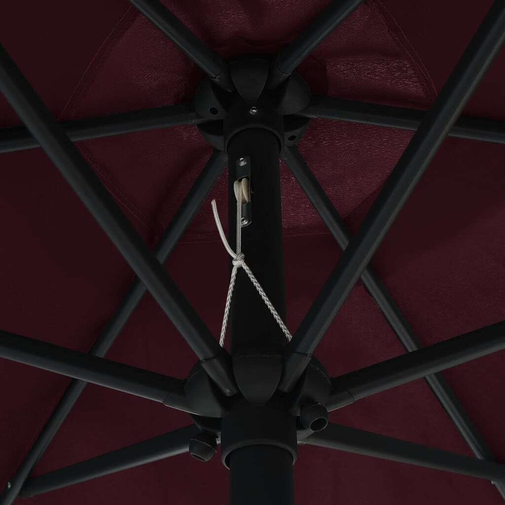 This garden parasol is the ideal way to enjoy your outdoor space while keeping shaded from the sun. With its stylish Bordeaux red look and sturdy aluminum pole, it combines style and functionality, making your balcony or patio nice and inviting.