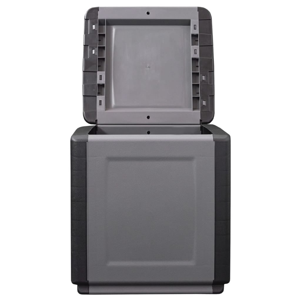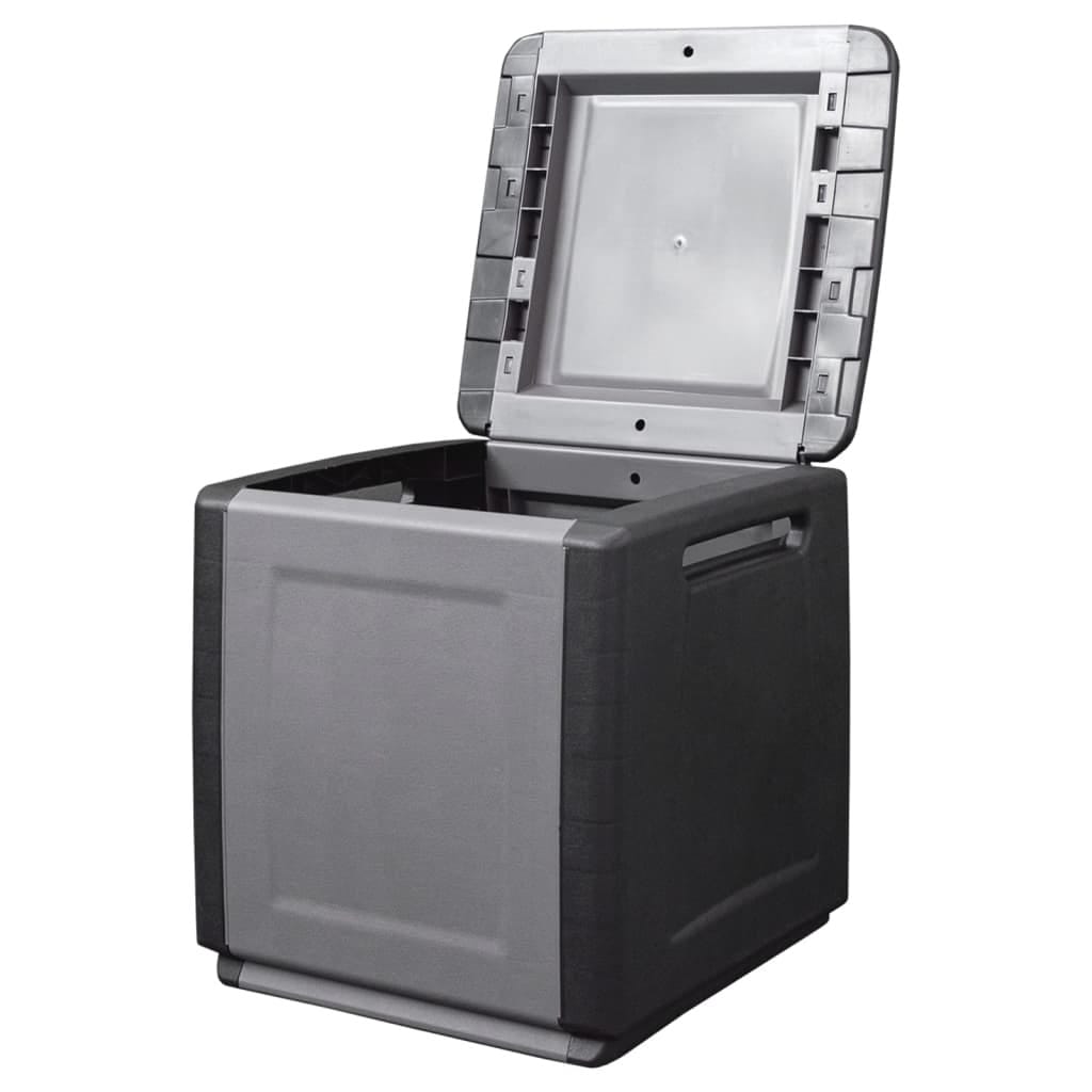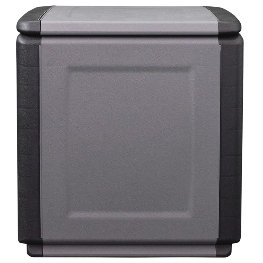 This garden storage box is a must-have for any outdoor space, made to blend in nicely with your patio or terrace style. It sports a smart dark grey and black color scheme that suits a minimalist look, making it easy to store various garden essentials with flair.