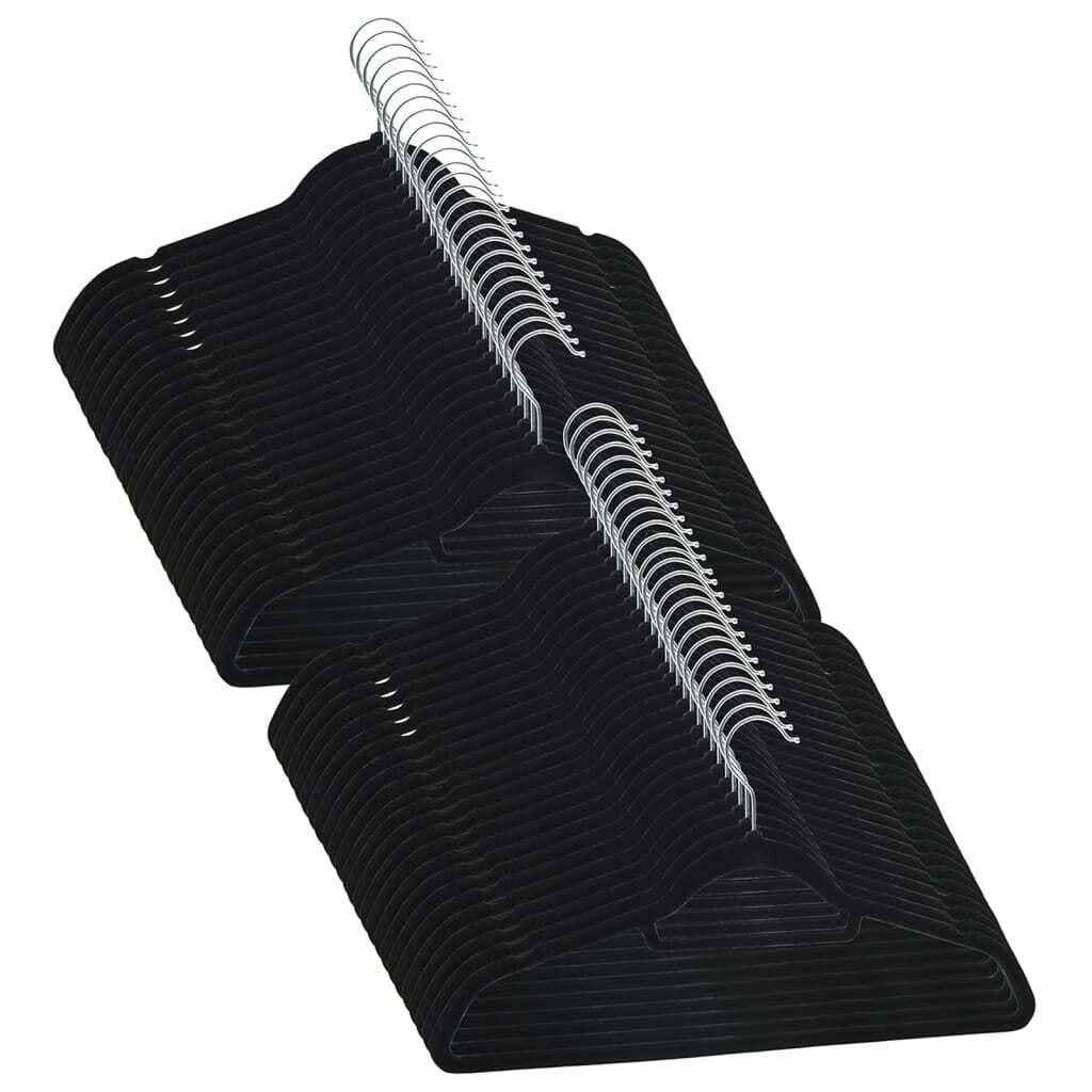 This clothes hanger set is the perfect way to keep your garments organized while making the most of your closet space. Featuring a sleek black velvet surface, these hangers are a stylish and practical way to keep your clothes wrinkle-free and neatly arranged.