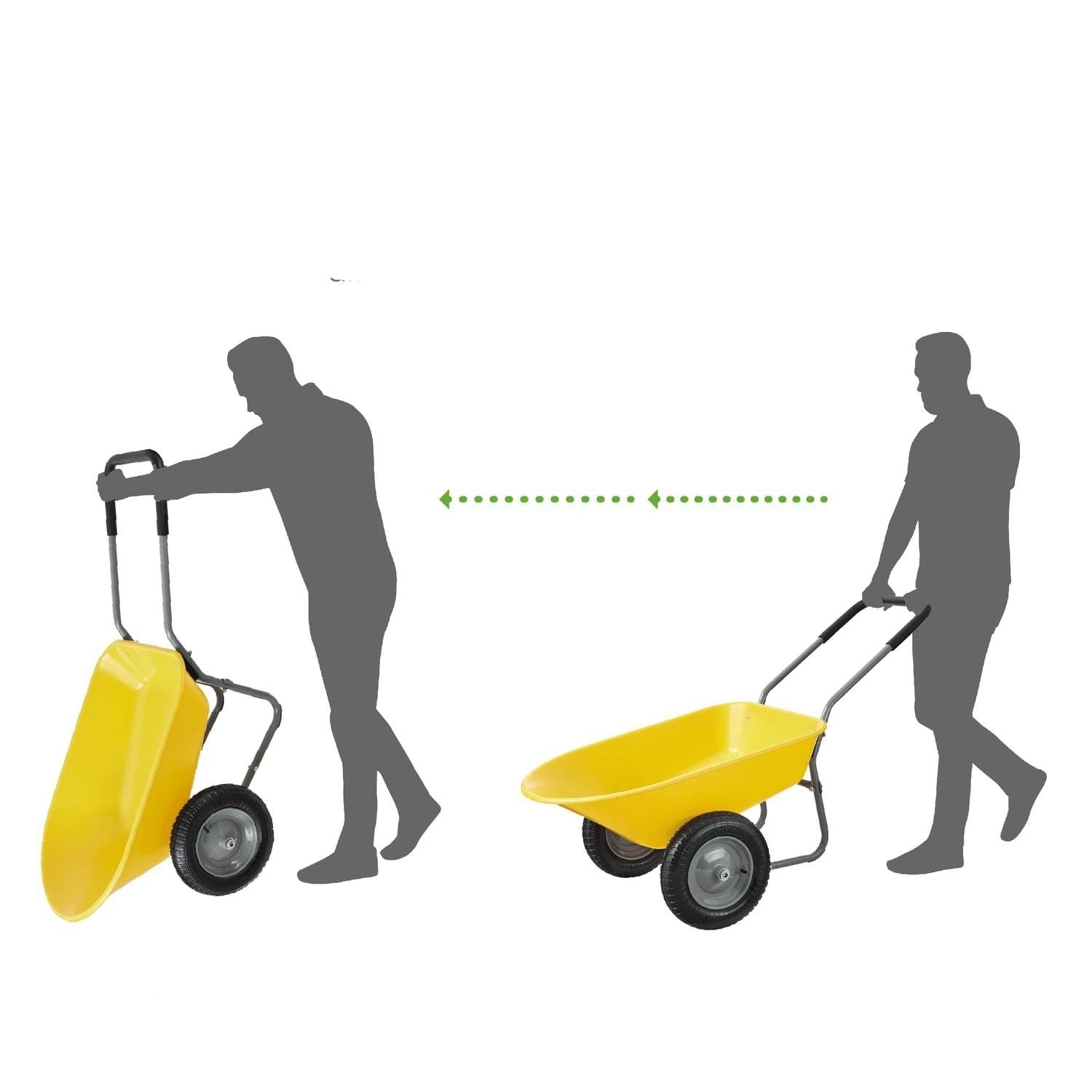 Grab your wheelbarrow and let’s get to work! This Heavy Duty Dual Wheel Multipurpose Rust Proof Wheelbarrow – Yellow is crafted with a plastic bin and powder-coated steel frame that prevents breakdown and wear for long-lasting use. This deep wheelbarrow holds up to 5 cubic feet of soil, bricks, mulch, gravel, and more, so you can conveniently carry out landscaping and other home improvement projects. Comes built with inflatable 13-inch rubber wheels, for a sturdy build that makes it easy to steer the cart on various terrains. Has a thick padded handlebar that doubles as a stand for idle use and makes moving the wheelbarrow easy and comfortable.