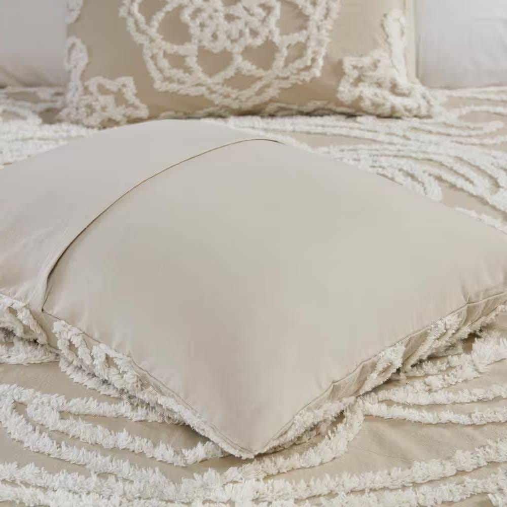 This King 100-Percent Cotton Chenille Bedspread with Fringe Hem in Khaki Taupe Beige provides an alluring shabby chic update to your bedroom. This globally inspired coverlet features a 100% cotton face and reverse with a tufted chenille medallion centered on top of the bed. A decorative fringe hem adds dimension, while 2 matching shams (1 in. twin/twin XL) complete the boho look. Perfect for all seasons use, this bedding set is also OEKO-TEX certified, meaning it does not contain any harmful substances or chemicals to ensure quality comfort and wellness. Due to the nature of the chenille fabric, some shedding will occur naturally in the first 3-4 washes.