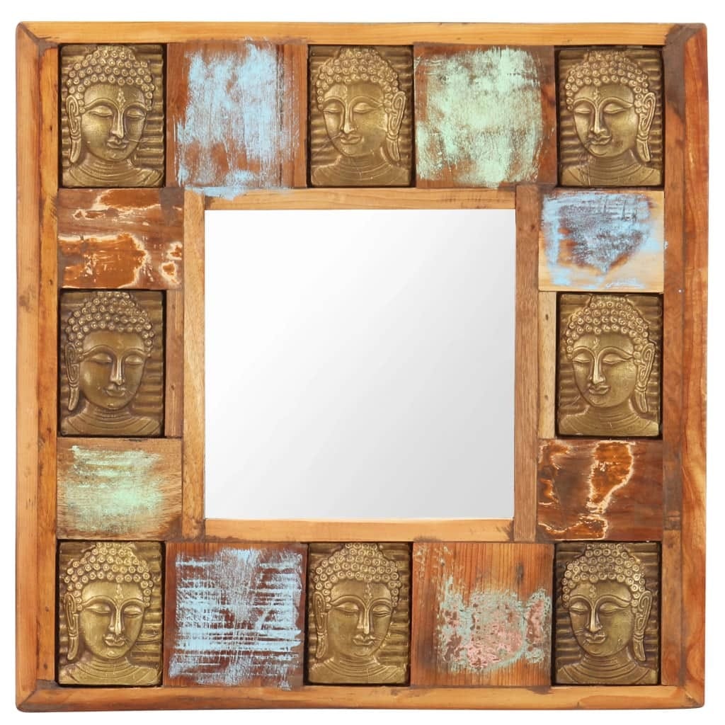 This Multicolor Buddha Cladding Mirror is a stunning decorative piece that blends function with artistry. Made from solid reclaimed wood, it offers not just a practical mirror surface but also jazzes up any space with its unique Buddha design and weathered finish. Ideal for hallways, bedrooms, or dressing rooms, this mirror is a striking focal point providing a clear reflection for grooming and styling.