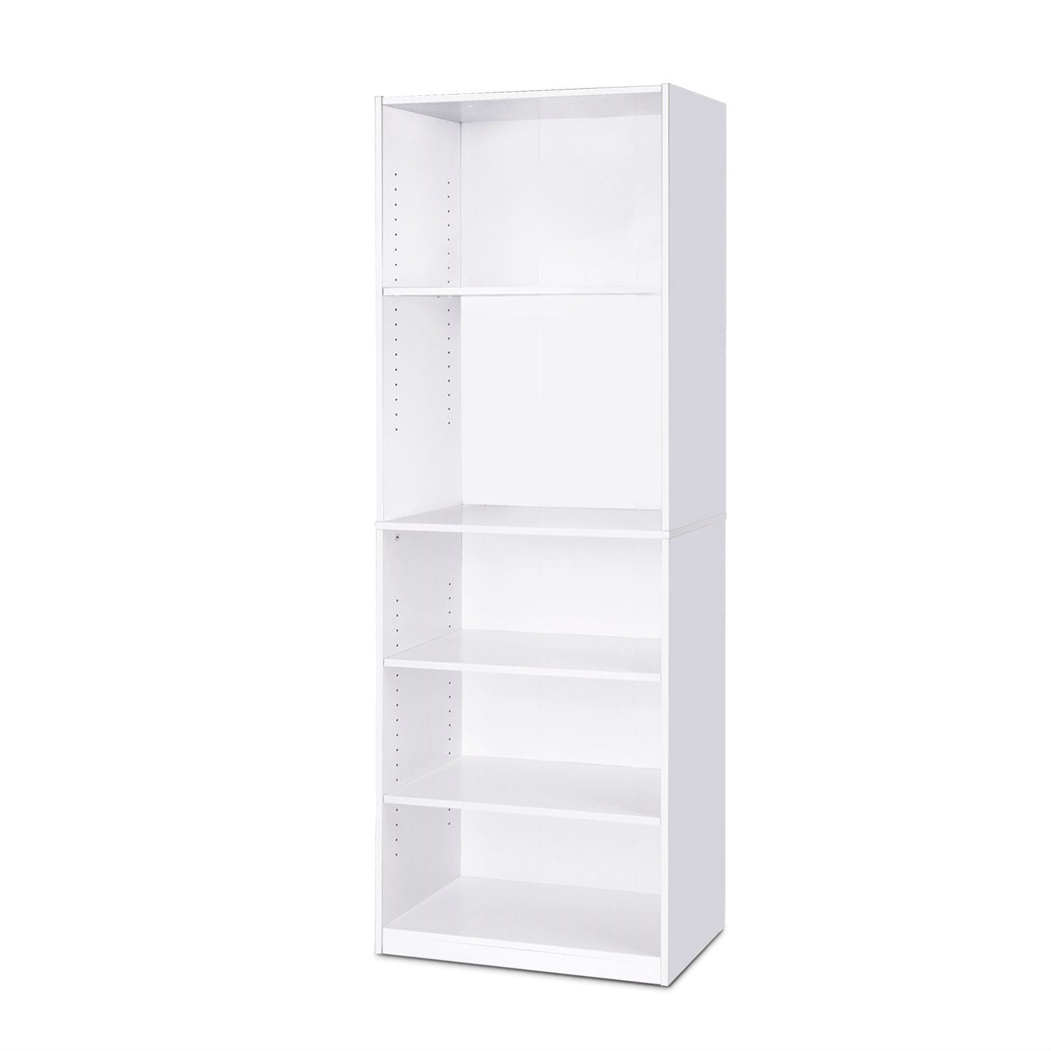 - Modern 5-Shelf Bookcase in White Wood Finish