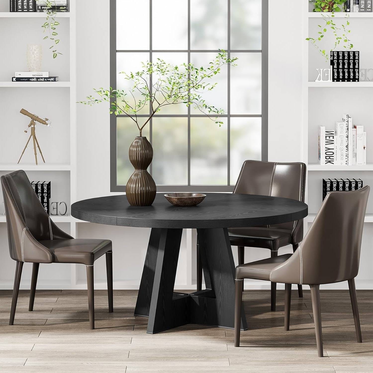 This Farmhouse Retro Black Round 47-in Wooden Kitchen Table exhibits a charming farmhouse look and warm retro brown color, adding rustic elegance to any room. With its spacious 47-inch tabletop, this round dining table comfortably seats 4 people, perfect for dinner parties or family meals. Built from high-quality thick MDF, this table is durable, waterproof, scratch-proof, and easy to clean, promising long-lasting usability. In addition to dining, this table can serve as a study or work table or as a striking centerpiece in your living room, showcasing its versatile design. Comes with clear instructions and necessary hardware, this table is easy to assemble. We are here to assist with any queries about the rustic round dining table.