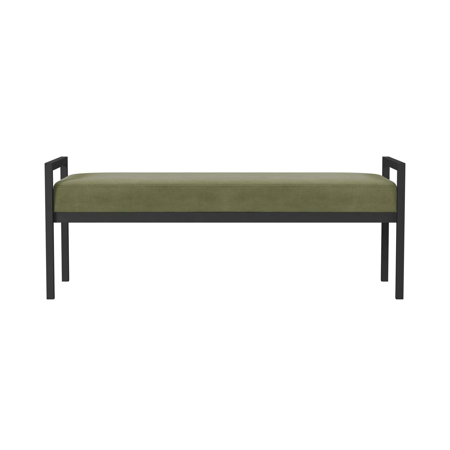 Our Modern Industrial Bed Bench with Black Metal Frame and Sage Green Velvet Cushion exudes modern style. Featuring our textural fabric on an open metal frame, our modern bench offers substantial size without overwhelming your space. Use it as an entryway bench, an end-of-bed bench, a dining bench, or a coffee table ottoman. Place it in a home office to display favorite books or offer extra seating.