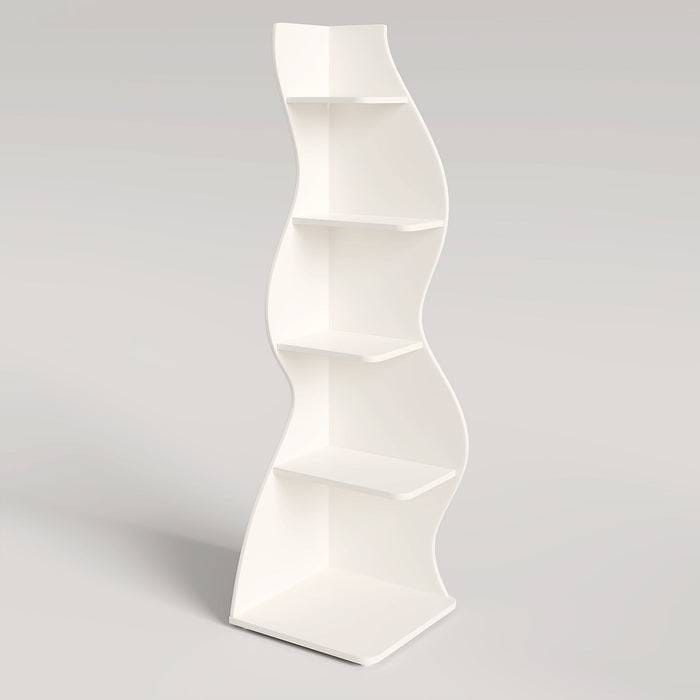Introducing this stunning Modern Whimsical 5 Shelf Corner Bookcase Stand Wood Finish, a contemporary 5-tier shelving unit fitting for any home or office corner. Its colored finish and sea grass-inspired design render it both fashionable and practical. Manufactured from top-tier board material, its sleek form enhances any space. Providing copious storage, it’s perfect for compact areas, offering organization without excess clutter. With easy assembly and adjustable shelves for optimal convenience, its neutral white hue and stylish design pair well with any dcor, lending sophistication to your room.