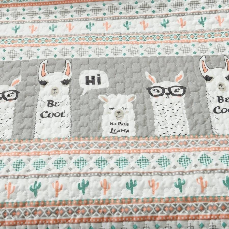 Your family will adore the trendy look of llamas, cacti and geometric shapes printed on microfiber. This Llama Cactus 6 Piece Lightweight Daybed Cover Set includes everything you need to give your daybed a complete and styled look. The bold look of the pink creates a statement in your space. This 6 Piece Daybed Cover Set gets softer and softer each time it is washed. Your kids or guests will love the feel of it when it is time to rest their heads. This Daybed Cover Set includes a soft daybed cover, two matching pillow shams, two pillow cases and a bed skirt to complete the look.
