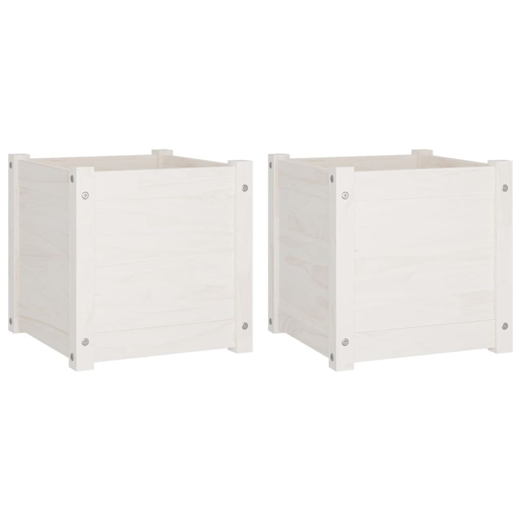 Planter Set of 2 White Solid pinewood Large Durable Planter