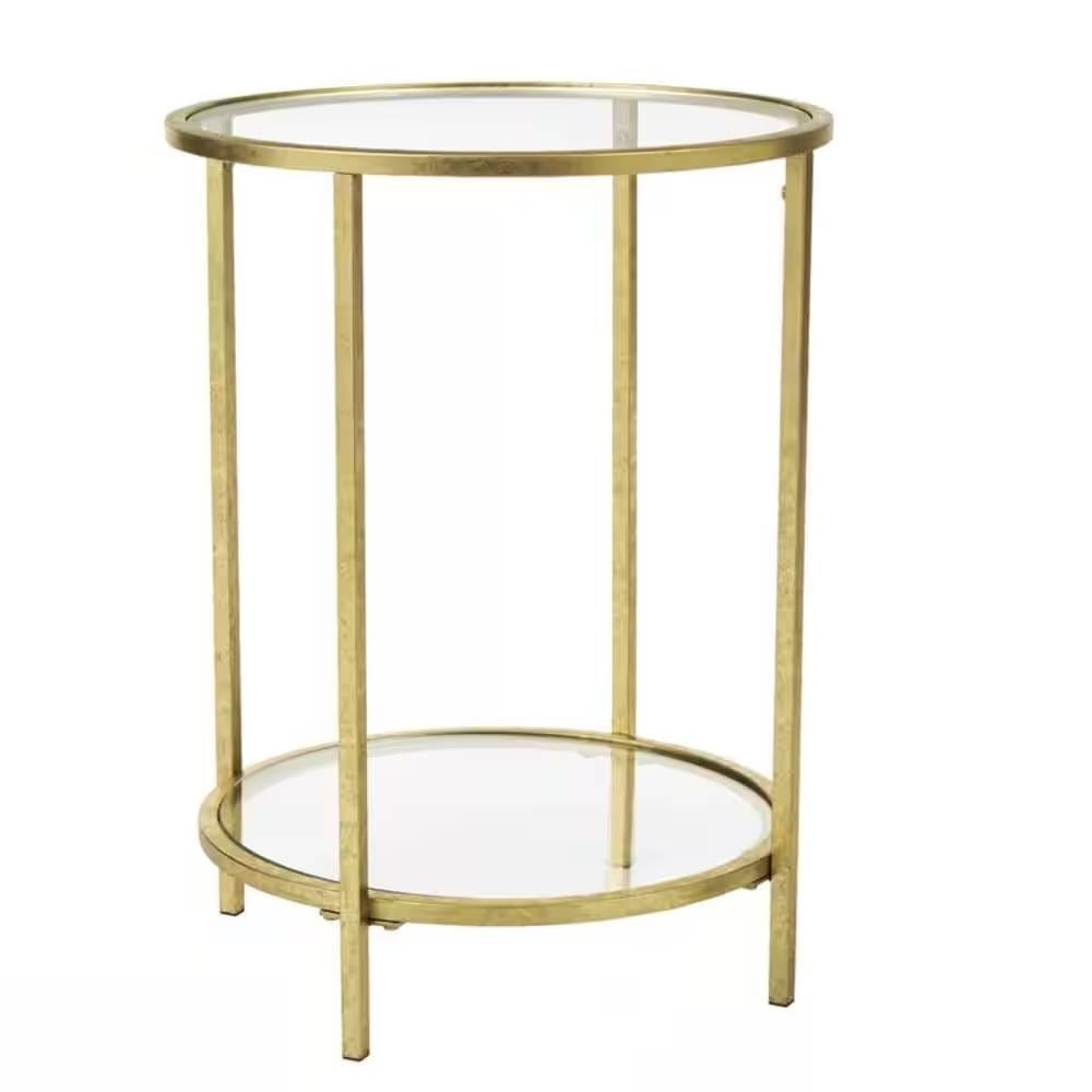 - Round Accent Side Table Gold Metal Glass Top Bottom Shelf End Table