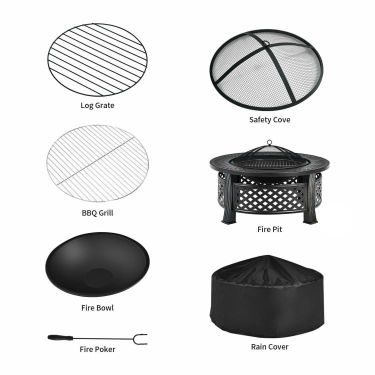 Rustic Steel Outdoor Fire Pit with BBQ Grill with Poker and Mesh Cover
