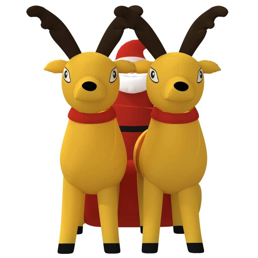 - Eye-Catching Design: The inflatable shows a cheerful Santa and sleigh with colorful reindeer, making it a delightful centerpiece for any holiday setup. This eye-catching piece enhances your outdoor decor and ensures your home shines in festive spirit.
