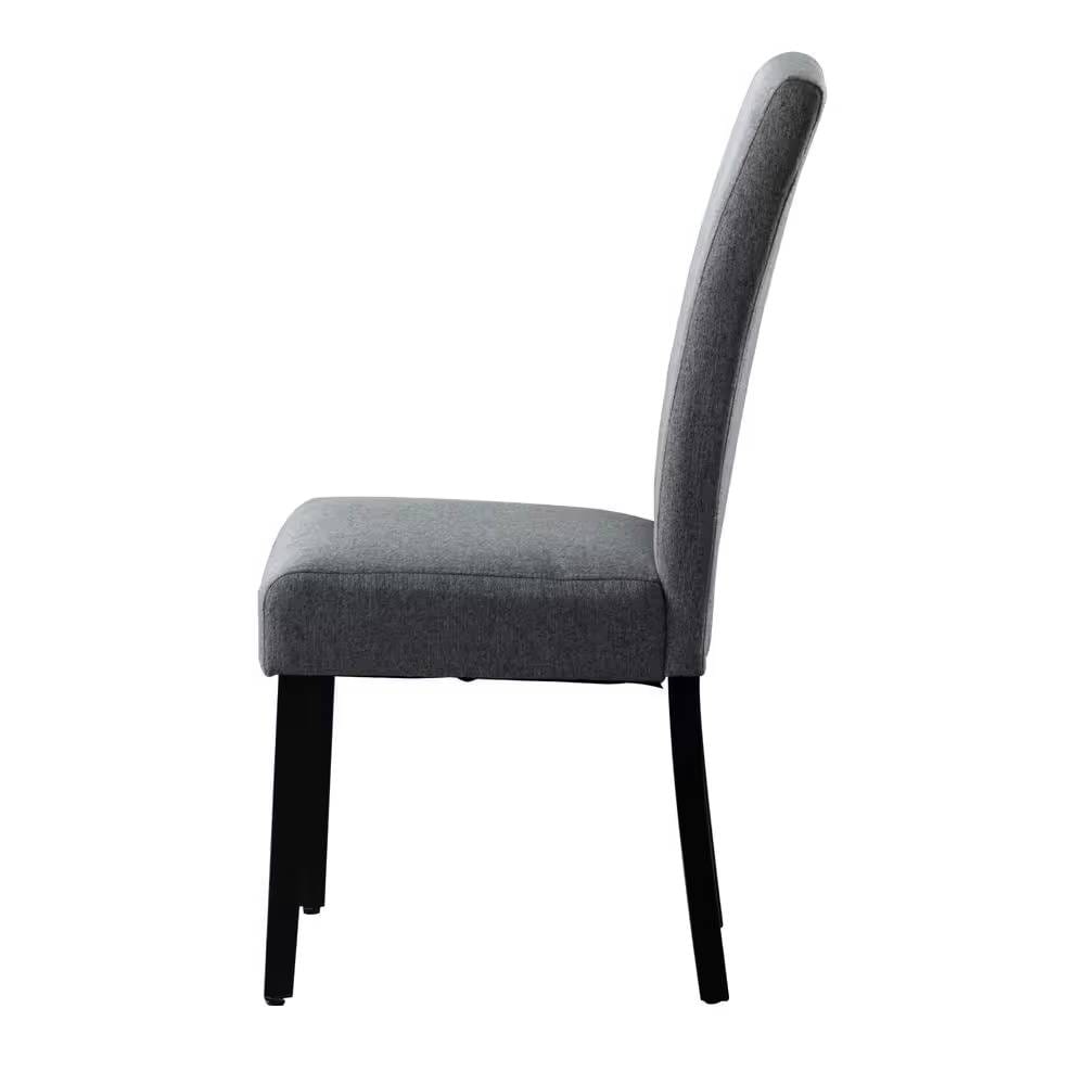Easily upgrade your kitchen with this Set of 2 Modern Grey Fabric Upholstered Dining Chair with Black Wood Legs. Featuring upholstery, the chairs are available in a range of colors to complement your decor. The clean, armless design elevates any space with timeless panache. The chair is covered with fabric material and padding with wooden legs making it more solid with a modern style.