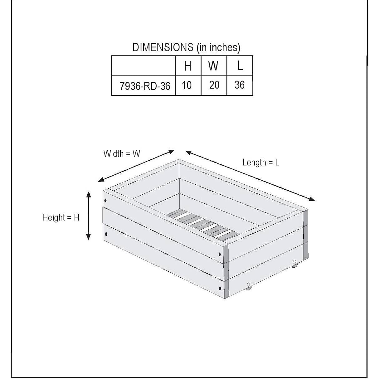 - 36″L x 20″W x 10″H
