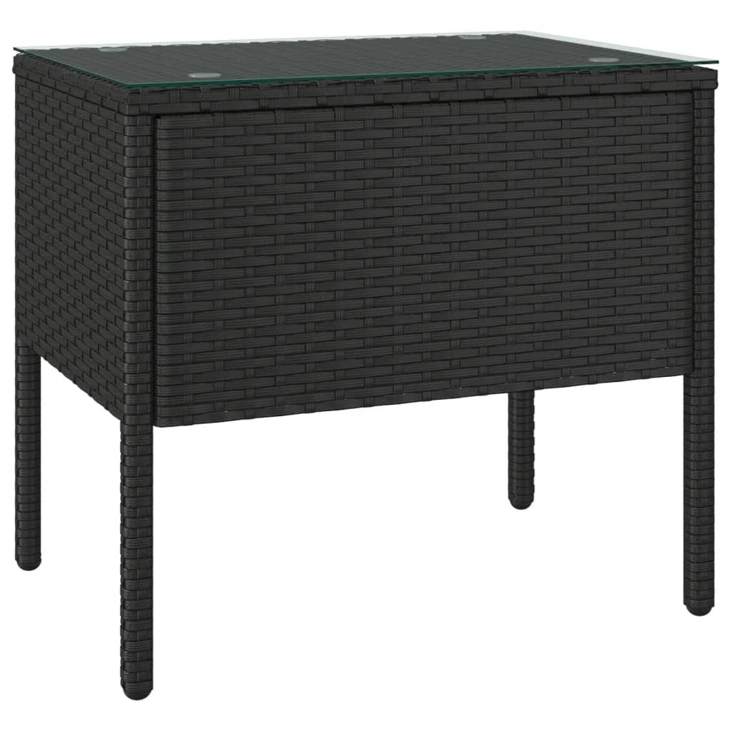 This modern rectangular side table’s all about looks and handy functionality, perfect for sprucing up indoor and outdoor spaces. Made from high-quality poly rattan and tempered glass, its bold black finish and clear top add a touch of class to living rooms, bedrooms, or hallways. It’s spot on for serving tea or coffee or simply for showcasing decorative items alongside your fave seating.