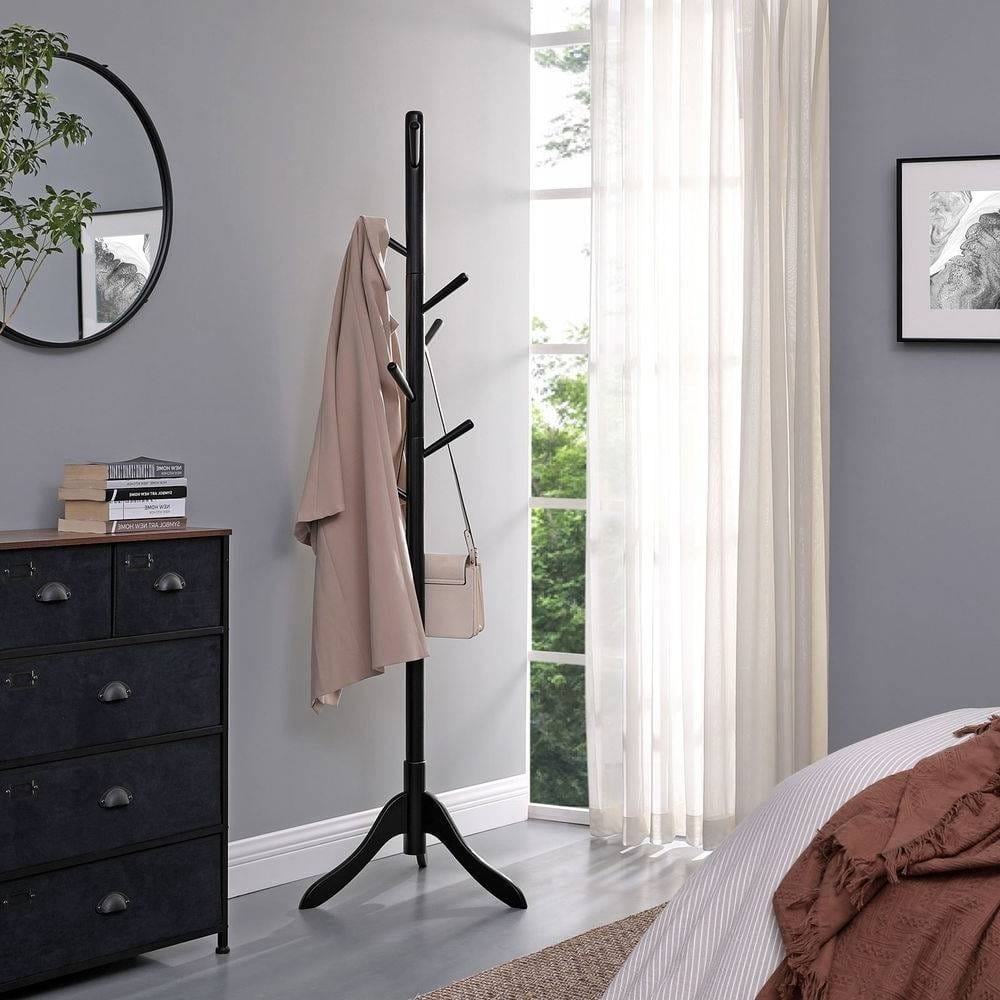 - Space Saving Solid Wood Modern Coat Rack in Black Finish