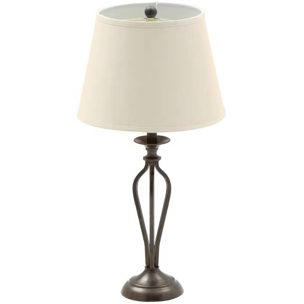 - Traditional Bronze Metal Finish Table Lamp with Beige Linen Shade