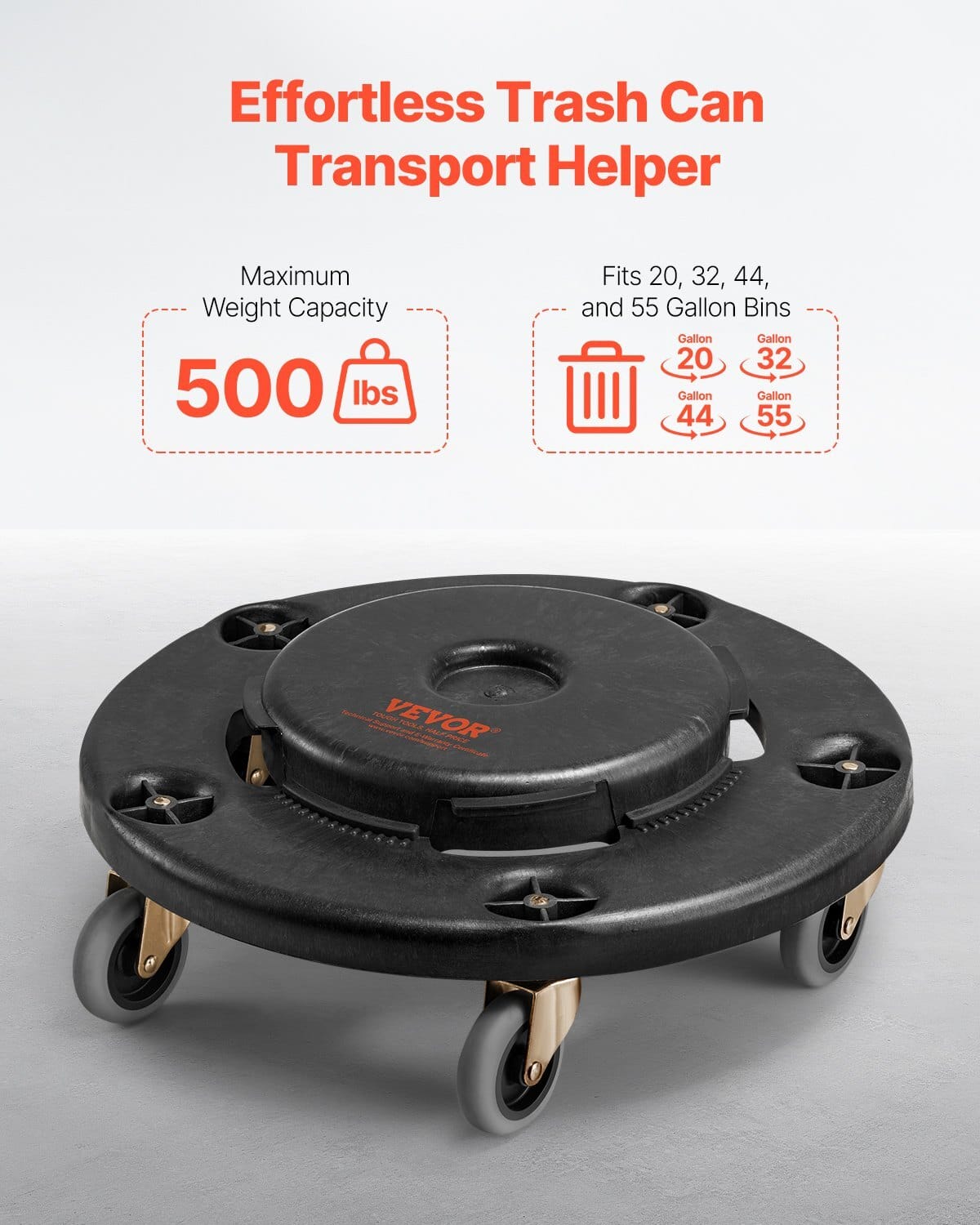 Weight Capacity: 500 lbs / 227 kg,Compatible Bin Capacity: 20, 32,44, and 55 Gallon,Color: Black,Item Model Number: XDW-007-C,ProductWeight: 8.2 lbs / 3.7 kg,Quantity: 2 Pieces,Product Dimensions: 18″× 6.1″ / ⌀455 × 155 mm,Main Material: PP (Polypropylene)