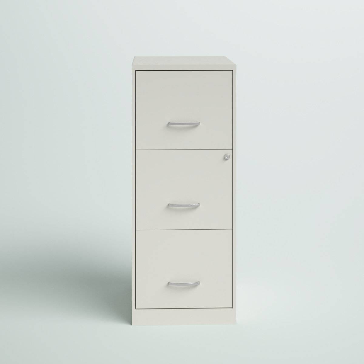 This Metal 3-Drawer Vertical Key Locking Filing File Cabinet arrives fully assembled and ready for use! This 3-drawer vertical filing cabinet delivers functionality to your office or home workspace. It showcases a smart-looking style and a highly efficient design that is the ideal solution to your need for more storage and organization woes. It is made from steel and has three drawers on easy-glide metal slides that accommodate letter-sized files. We love that the files hang right on the cabinet sides. WhatÂ’s more, two of the drawers lock for your confidential paperwork or valuables. This filing cabinet arrives at your door fully assembled, so move it into place and file away.